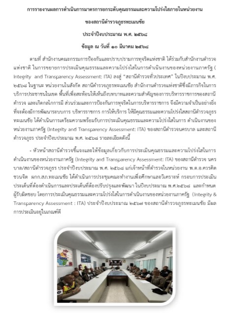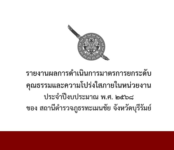 O25 รายงานผลการดำเนินการตามมาตรการส่งเสริมคุณธรรมและความโปร่งใสภายในหน่วยงานรายงานการดำเนินการส่งเสริมคุณธรรมฯ 1 ตุลาคม 2566 โดย thamenchaipolice / ITA,ITA2568 ( รายงานผล ) การเตรียมความพร้อมรับการประเมินคุณธรรมและความโปร่งใส (ITA) Word Pdf Facebook iconFacebookTwitter iconTwitterLINE iconLine